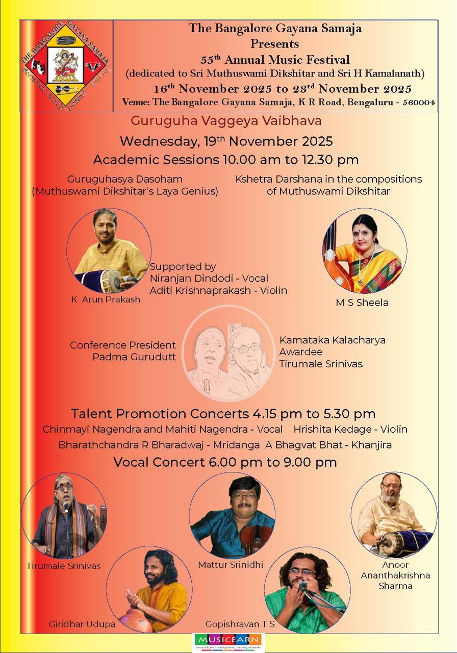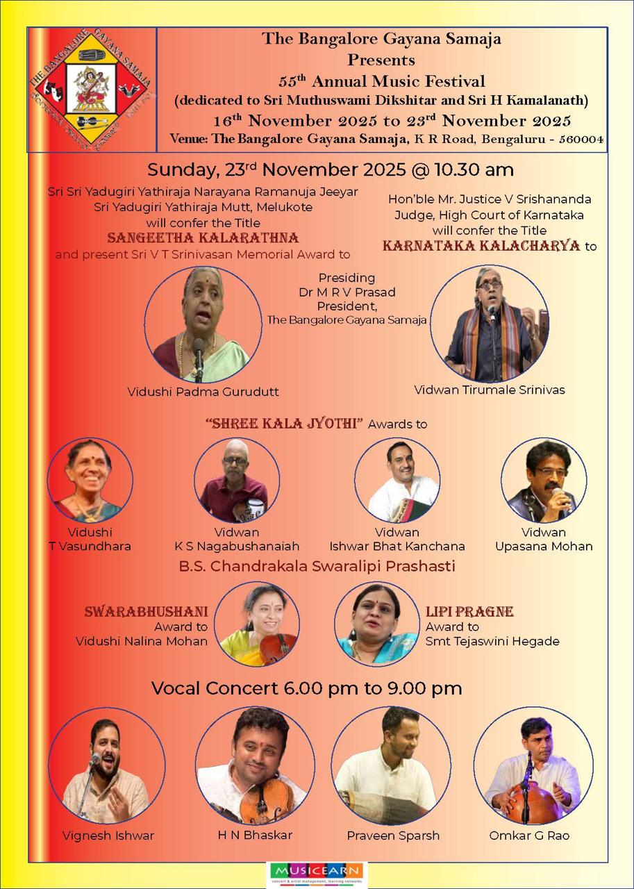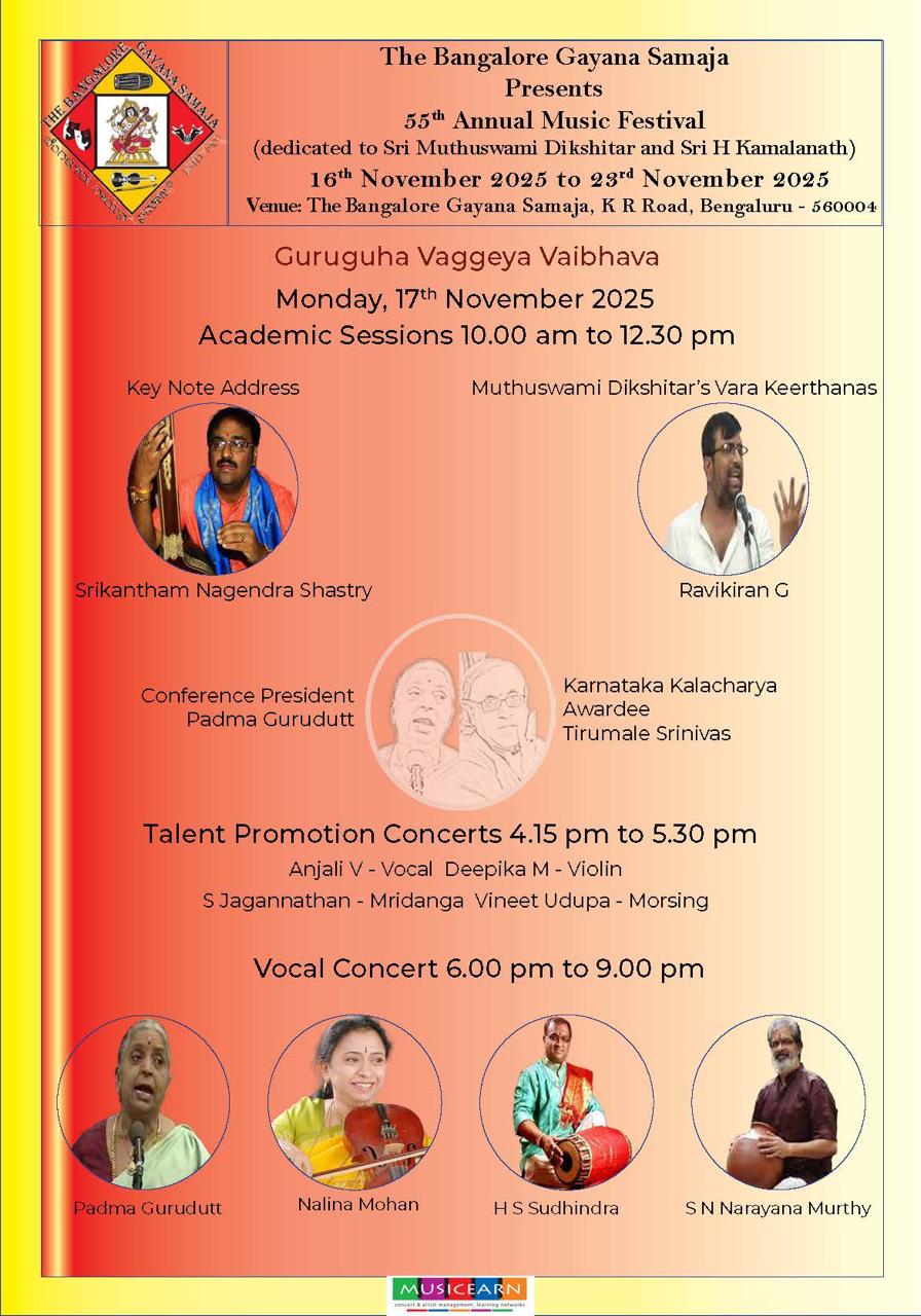 On Sunday the 12th of October 2025 at.5.30 pm Grand carnatic classical vocal by
