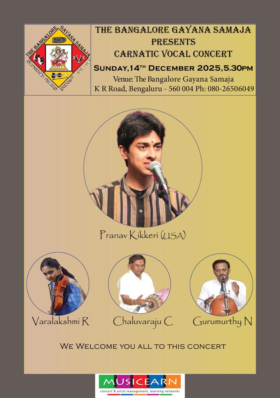 On Sunday the 12th of October 2025 at.5.30 pm Grand carnatic classical vocal by